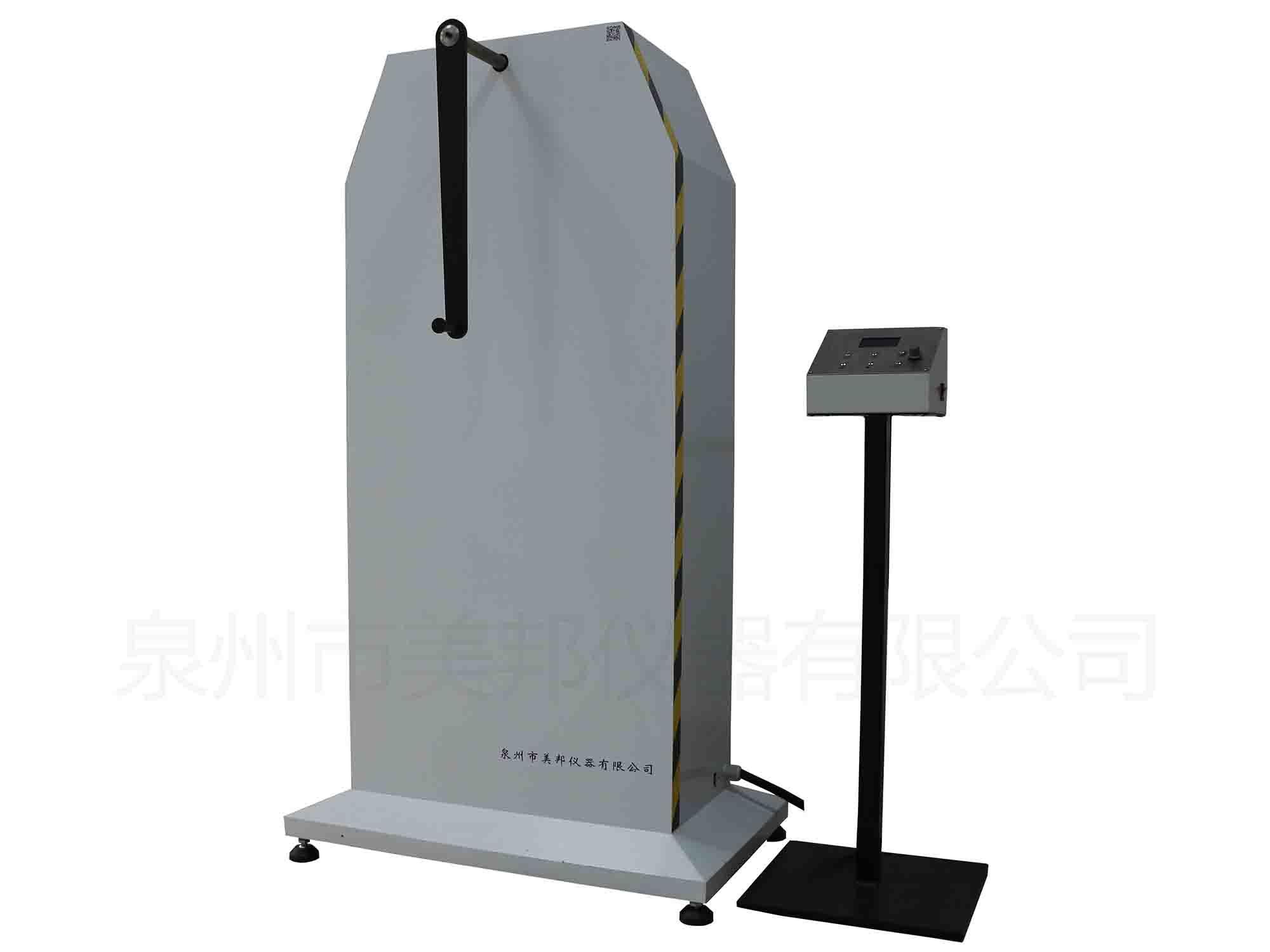 This machine is suitable for the book bag swing and drop test, non book bag loading some load, hanging in the machine fixture, with a certain angle swing of a certain number of times, or rest after a certain period of time to test the vertical drop, book bag strap, handle, hook and loop adjustment is solid and measuring the components the length of the deformation.
